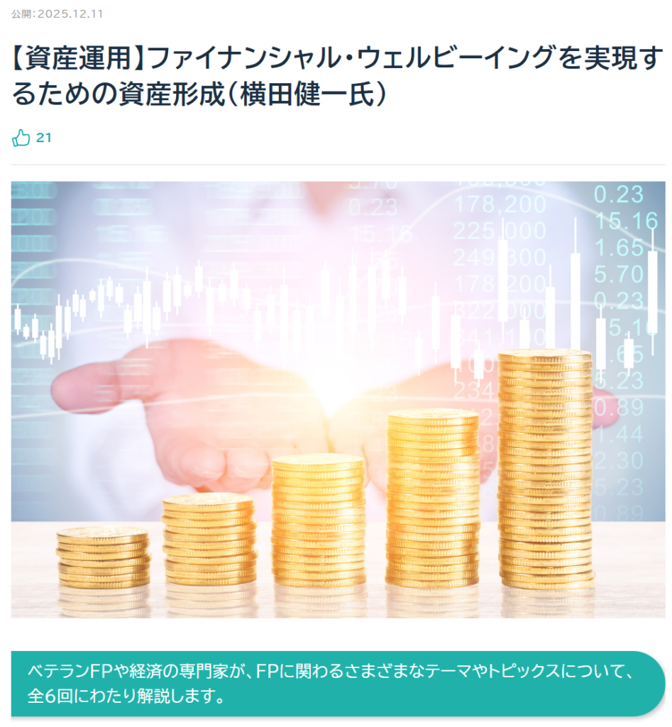 【資産運用】ファイナンシャル・ウェルビーイングを実現するための資産形成(横田健一氏)