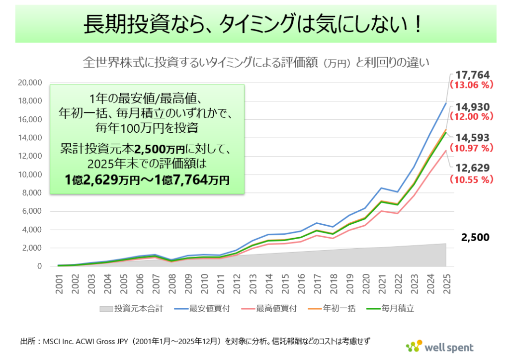 今回は、全世界株式インデックスを対象とした25年間のシミュレーション結果を基に、なぜタイミングが重要ではないのか、その衝撃の事実を解説します。
