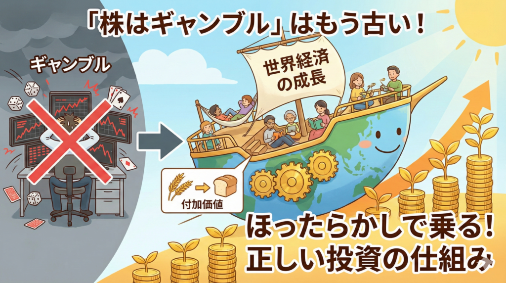 株式投資の本質とは、短期的な値幅取りではなく、「世界経済の成長」という壮大なプロジェクトに参加し、企業が生み出す付加価値の分配を受け取り続けることにあります。