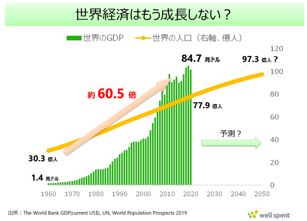 株式投資の本質が企業の価値創出にあるならば、投資の成否は「世界経済が成長し続けるか」にかかっています。