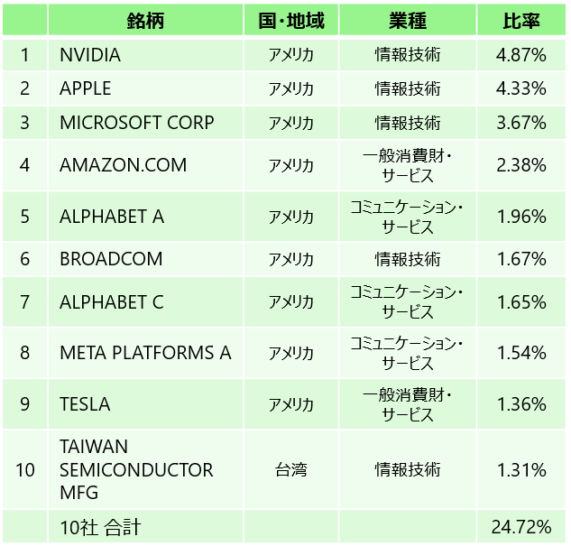 「全世界株式インデックス(オール・カントリー・ワールド・インデックス)」などのインデックスファンドを1本保有するだけで、アメリカのアップルやマイクロソフト、エヌビディアといった超有名企業から、日本や新興国の企業まで、世界数千社に一度に分散投資が可能です。