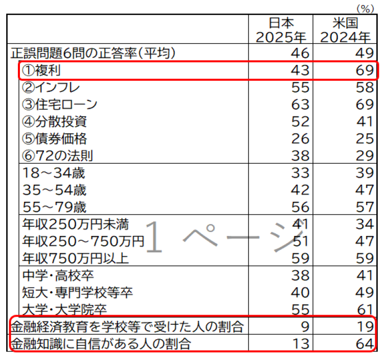 詳細なデータや計算方法については、「金融リテラシー調査2025年」の報告書を直接ご確認いただければと思います。