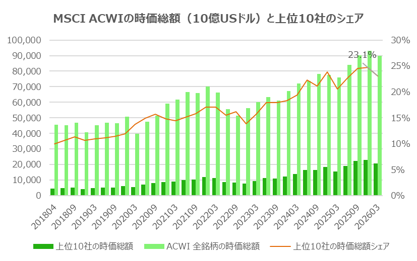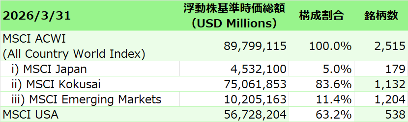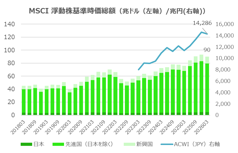 2026年3月末までのMSCI浮動株基準時価総額の推移
